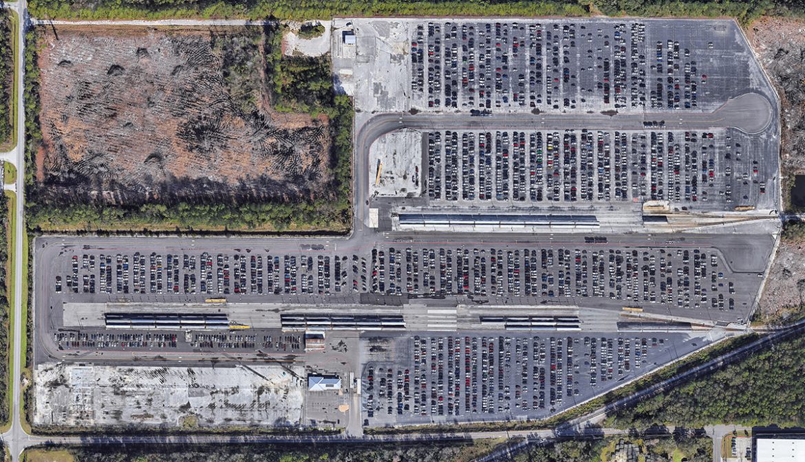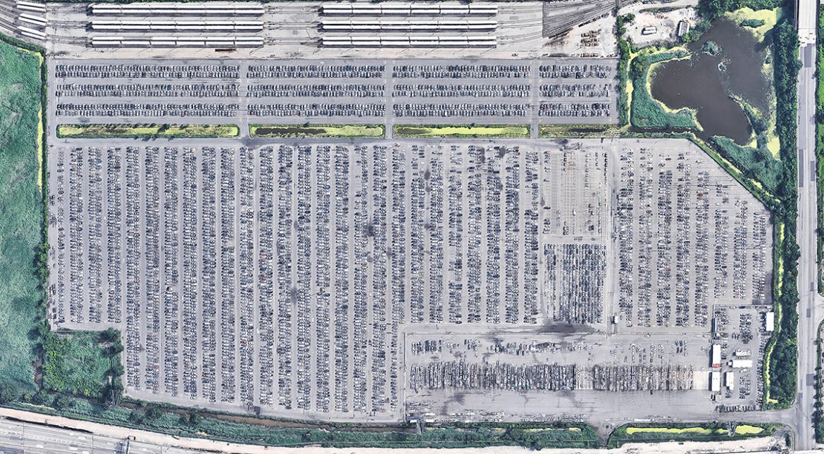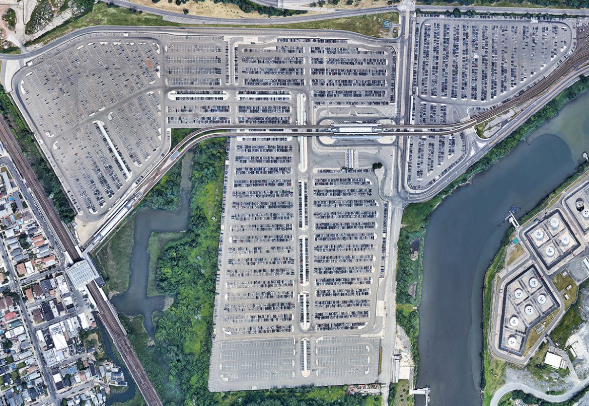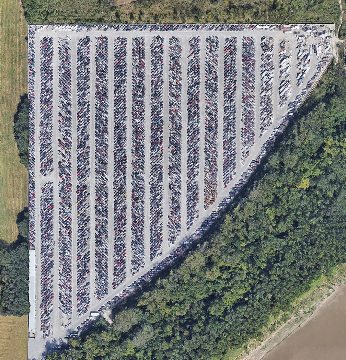 “My SUV weighs more than your doubts” begins from a Google Maps satellite image: an urban parking lot seen from above. A real, ordinary scene, enlarged until it becomes an installed landscape. The photograph, precise and impersonal, is placed on the ground and forces the audience to walk around it along a fixed perimeter, with no possibility of crossing directly. The space is familiar, yet estranging: entire portions of the city devoted exclusively to immobile objects. The automobile, long an emblem of freedom and movement, appears here in its most common (yet rarely thematized) condition: immobility. The work thus becomes a kind of atlas of urban stasis, where the rational geometry of planning meets the aesthetics of inactivity. An iconography of the infinite parking lot, of absent presence, of bulk turned into normality. In the middle of the path, a road sign laid on the ground adds an ironic touch, reminding us of the unresolved tension between the individual desire for ownership and the collective costs that follow.